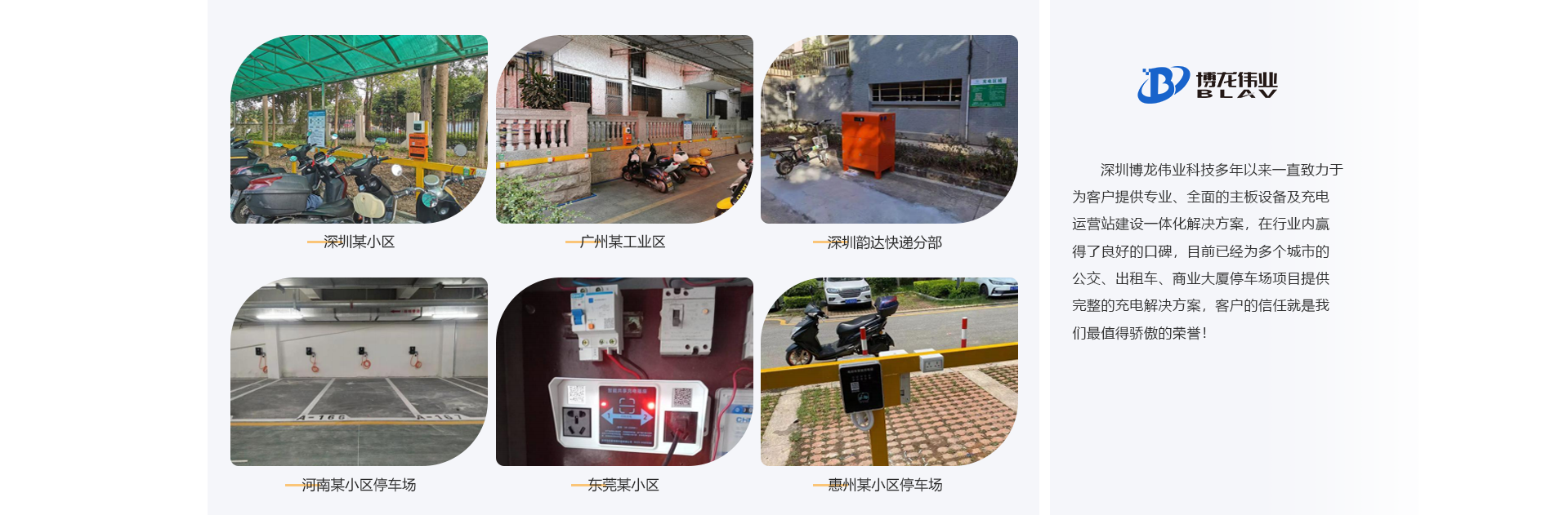 深圳市博龍偉業(yè)科技有限公司創(chuàng)辦于2002年,是一家集研發(fā)、制造、銷售于一體的科技企業(yè)。專業(yè)從事物聯(lián)網(wǎng)智能控制、共享充電、遠(yuǎn)程智能控制、智能GPS自動(dòng)報(bào)站的研究、開發(fā)、制造及銷售,憑借公司強(qiáng)大的技術(shù)力量和經(jīng)濟(jì)實(shí)力,不斷開發(fā)出具有國際先進(jìn)技術(shù)水平的新產(chǎn)品。公司產(chǎn)品廣泛適用于公交車、觀光車、電動(dòng)車充電、新能源汽車充電、智慧社區(qū)、智慧園區(qū)等。 項(xiàng)目案例有: 共享電瓶車充電樁,共享單車、共享按摩椅、共享充電寶、共享紙巾機(jī)、醫(yī)院共享陪護(hù)床、共享復(fù)印 機(jī)、共享雨傘、遠(yuǎn)程控制開頭電源等。